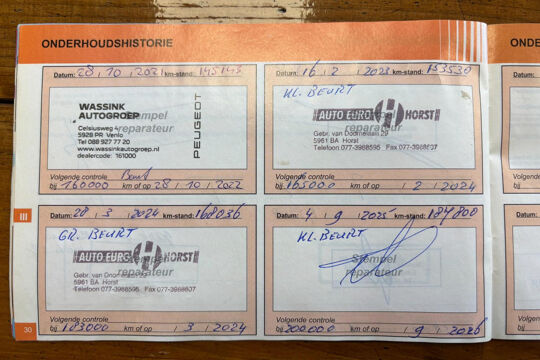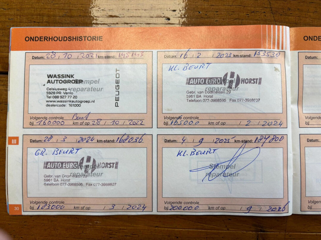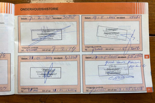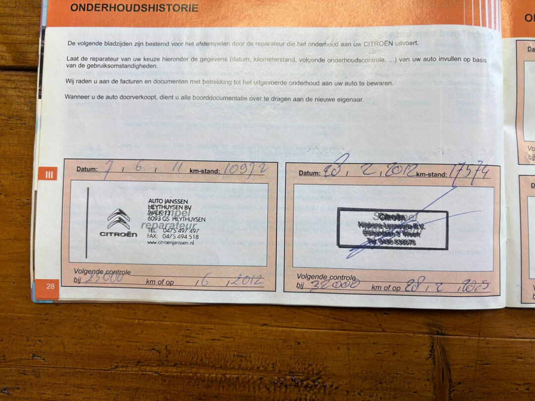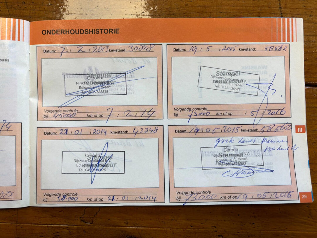 Het onderhoud is pas uitgevoerd, zoals te zien op de foto's van de onderhoudsboekjes.